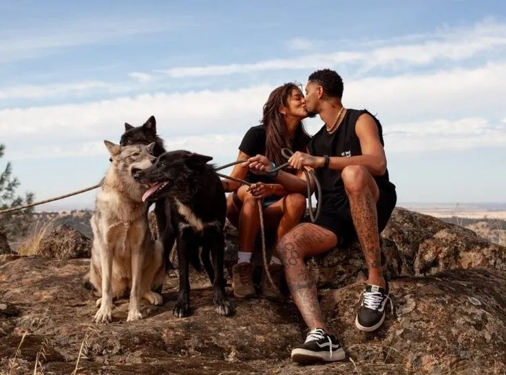 很快,人们就知道了他的梦想是什么。两个月后,安佳丽在网上曝出了自己和兰姆的合照官宣恋情,两人卿卿我我,身边还有三匹狗化的狼。可以想象,至少在发展联盟期间,兰姆就和安佳丽坠入了爱河。