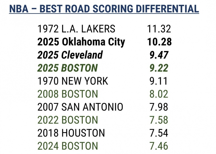 2025-03-15 16:28:50历史单赛季客战场均净胜分榜:72年湖人第一 今年雷骑绿有望冲击