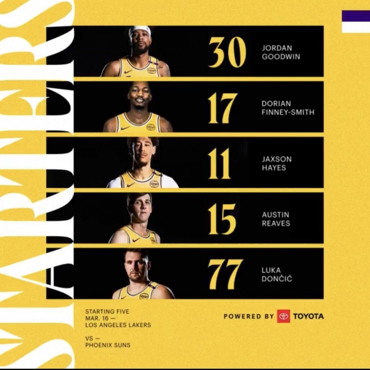 2025-03-17 06:46:47湖人首发:东契奇 里夫斯 古德温 芬尼-史密斯 海斯