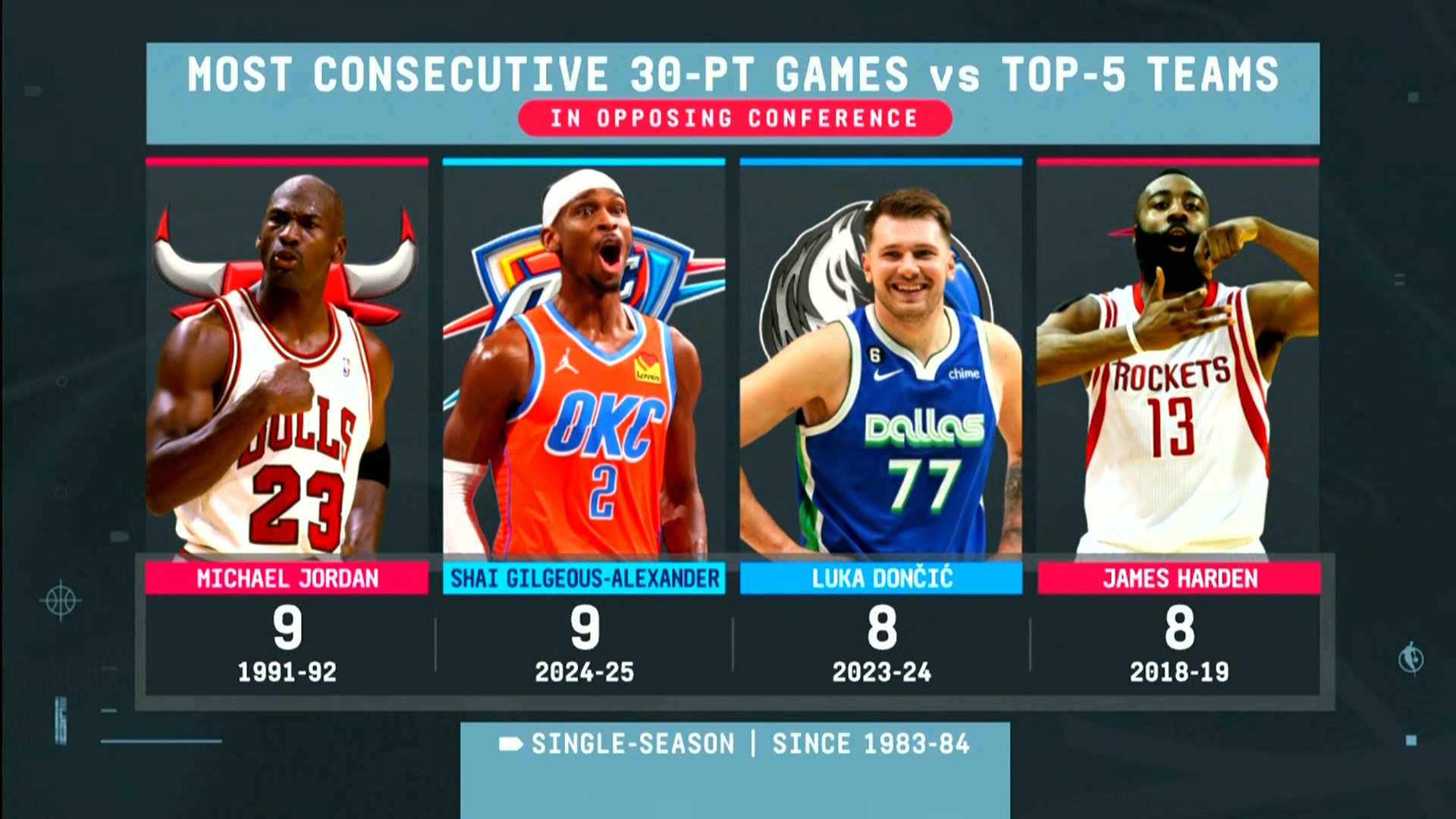 2025-03-17 19:40:26超东契奇+哈登!平乔丹⚡️亚历山大打对方半区top5连续9场30+ !