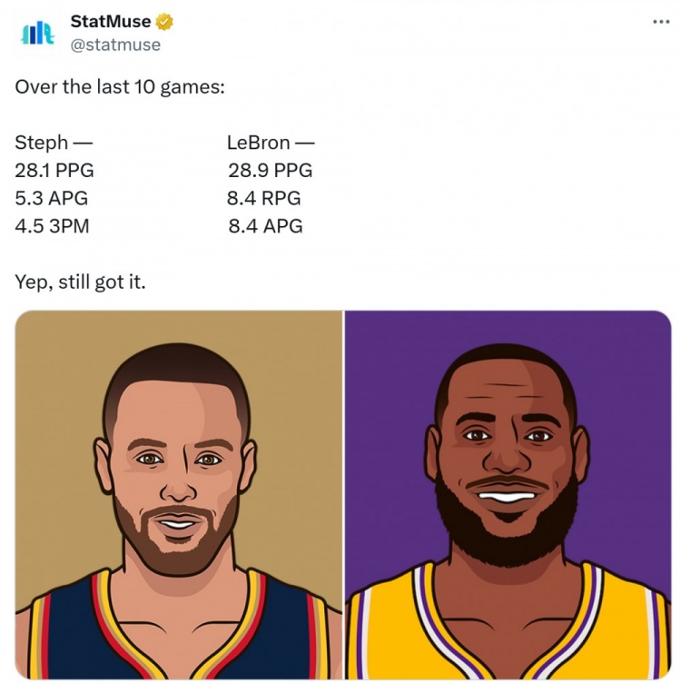2025-02-25 00:24:15宝刀未老!近10战库里场均28.1分&进4.5三分 詹姆斯28.9+8.4+8.4