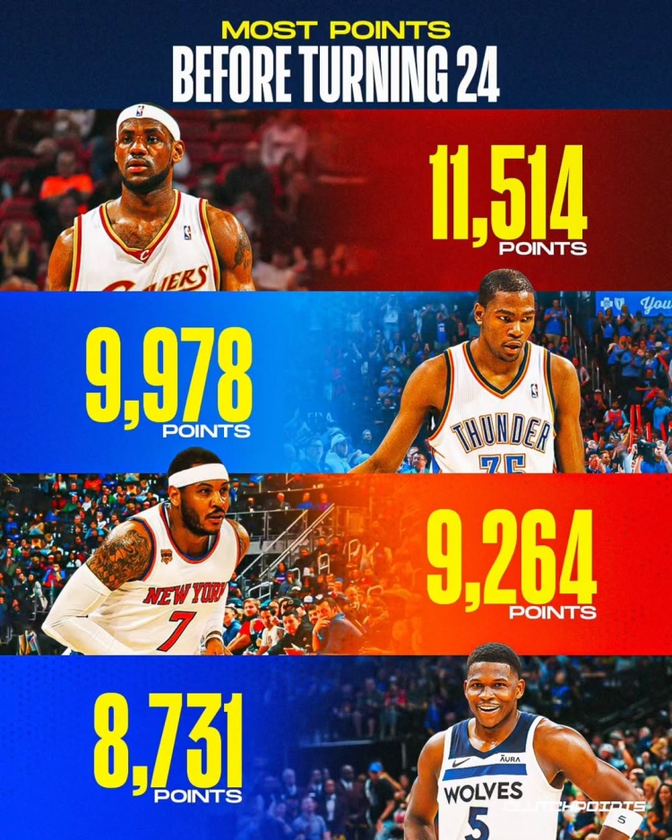 2025-03-18 20:45:26球星24岁前得分榜:华子8731登第4 詹姆斯断档第1 KD甜瓜分列2、3