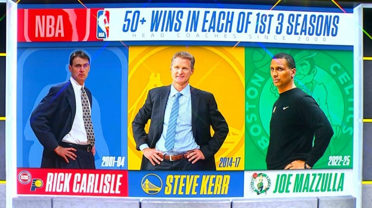 2025-03-19 16:33:15梦幻开局!生涯前3个赛季皆50+胜场的主帅:卡莱尔、科尔、马祖拉