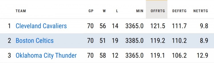 2025-03-22 15:26:58雷霆高居联盟第一 防守效率&净效率联盟第一 进攻效率联盟第三