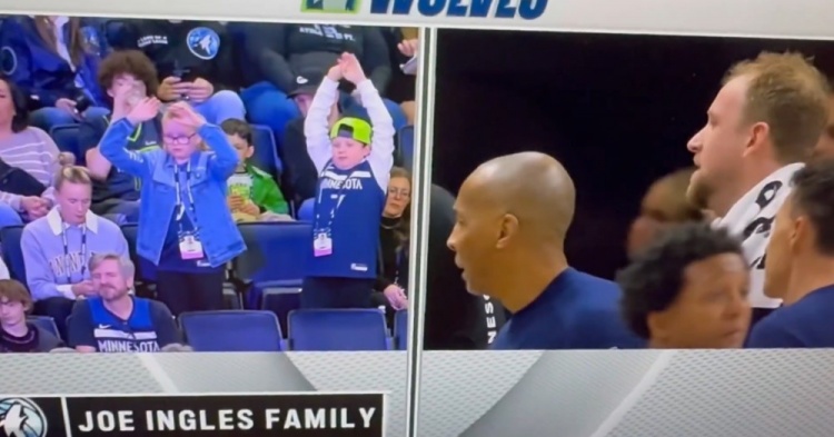 本场比赛,森林狼老将乔·英格尔斯12岁的自闭症儿子雅各布,在家人的陪同下来到了现场观看父亲的比赛。在家人的支持下乔-英格尔斯今晚首发出战六分钟,尽管英格尔斯未能得分,但这个夜晚的意义远非技术统计所能体现。