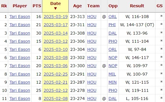 2025-03-26 22:35:25伊森本场贡献10分14板的两双 他在过去11场出任首发的比赛全胜