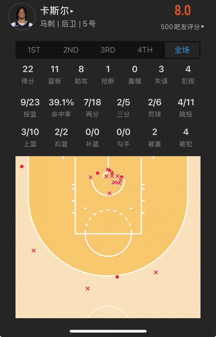 2025-03-28 22:16:55菜鸟丨卡斯尔22分11板8助 榜眼萨尔22+7 科利尔12中7贡献16分6助