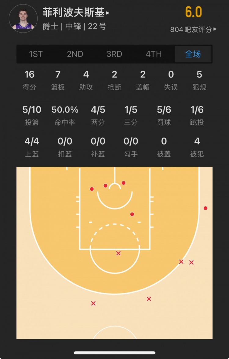 爵士32号秀 凯尔-菲利波夫斯基 登场33.2分钟