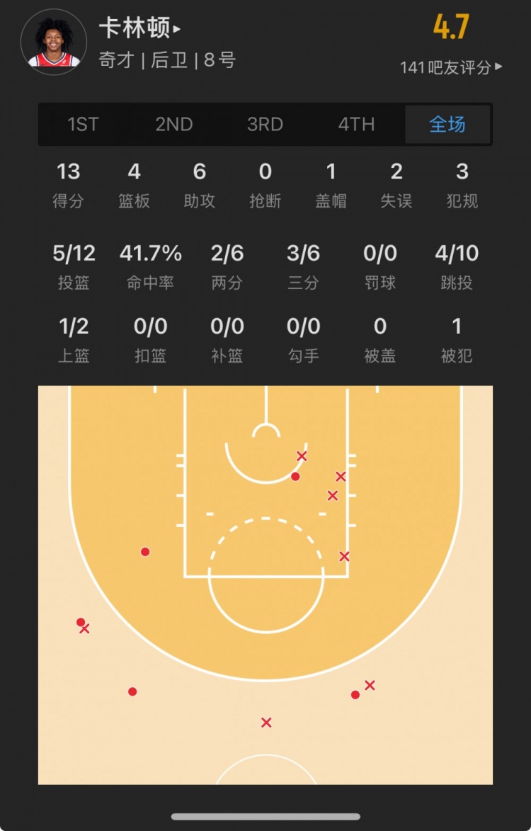 奇才14号秀 卡尔顿-卡林顿 登场30.7分钟