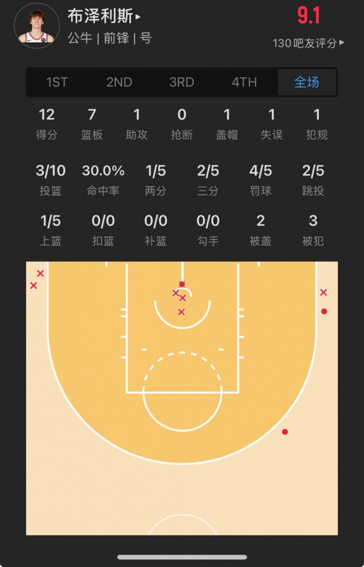 公牛11号秀 马蒂斯-布泽利斯 登场24.9分钟