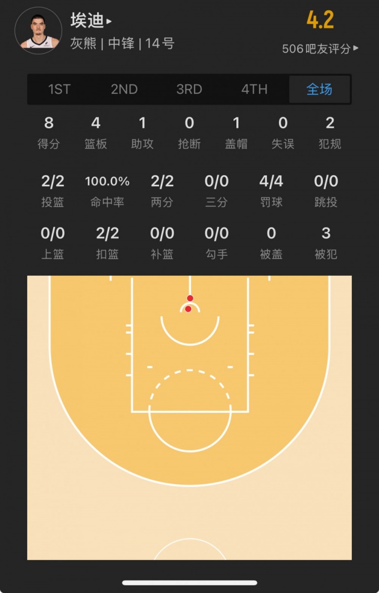 灰熊9号秀 扎克-埃迪 登场17.0分钟