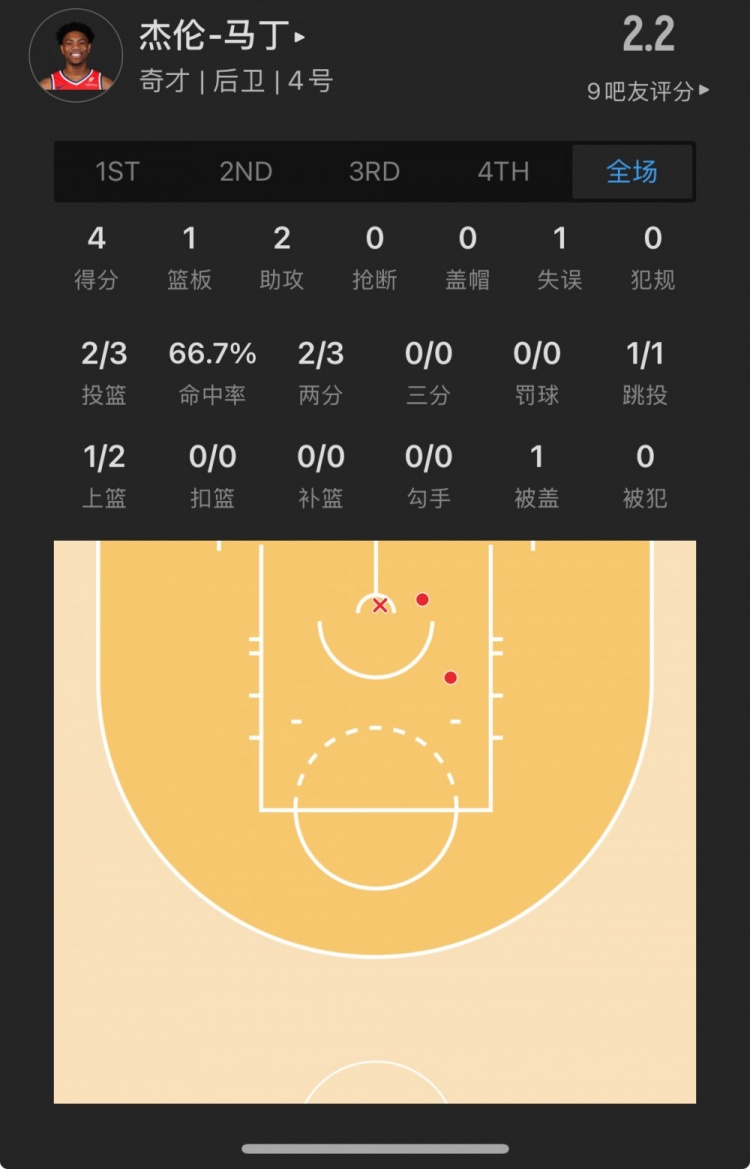 奇才落选秀 杰伦-马丁 登场22.5分钟