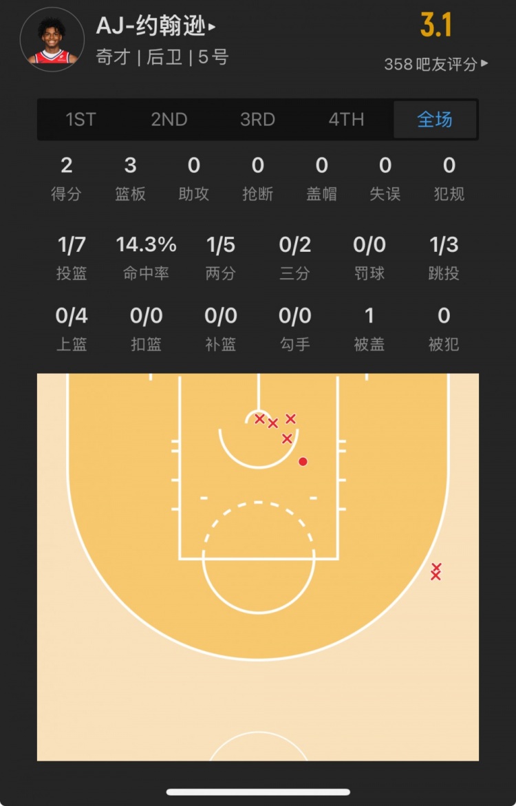 奇才23号秀 AJ-约翰逊 登场26.6分钟