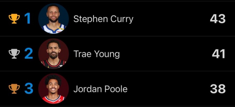 2025-03-29 12:11:54本赛季命中30+英尺投篮球员前3名:库里43记 特雷-杨41 普尔38