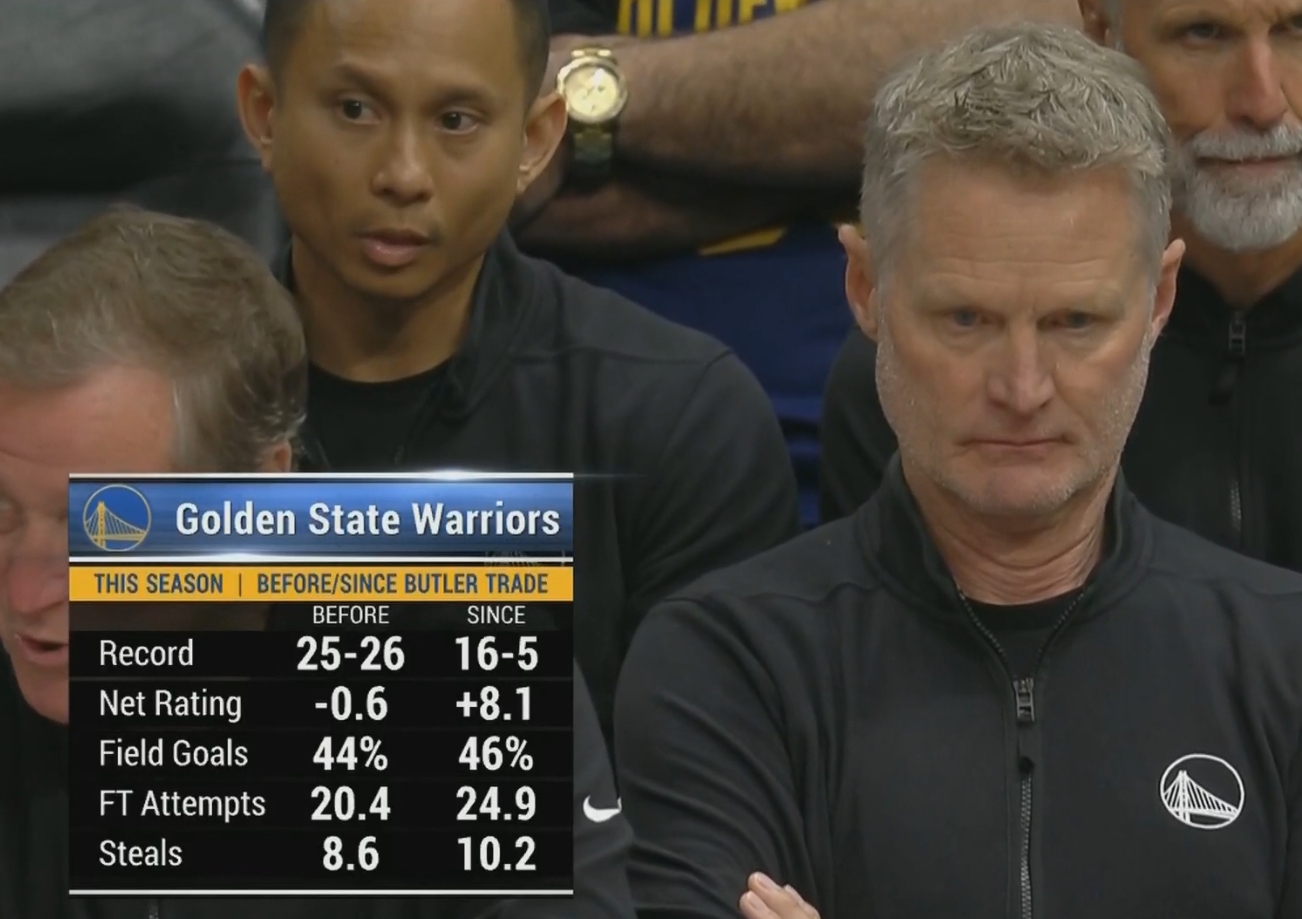 2025-03-29 12:28:02巴特勒交易后勇士全面提升 战绩16-5 命中率罚球抢断均提升