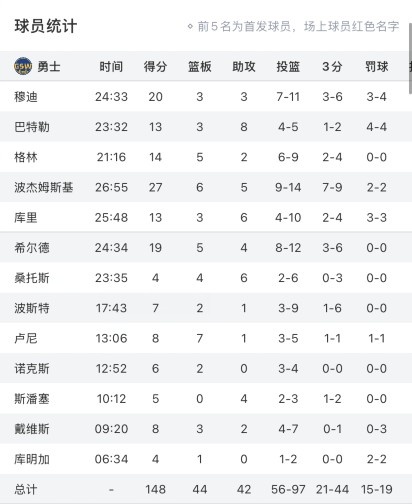 2025-03-31 11:31:24全员发挥!勇士出战13人全部都有得分入账 库追巴只出战3节