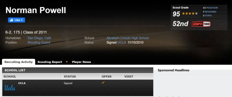 整个高三赛季,鲍威尔场均19.7分4.9个篮板2.7次抢断1次封盖1.7次助攻,以头号得分手的身份带领林肯高中一路高歌猛进,斩获无数殊荣,等到高四赛季打完,他再次交出了场均20.4分3.8个篮板球2.4次抢断1.1次封盖1.4次助攻的出色答卷,被ESPN评为四星高中生,在全美百大新人里排在第52位,有多所篮球名校都向他抛出了橄榄枝。