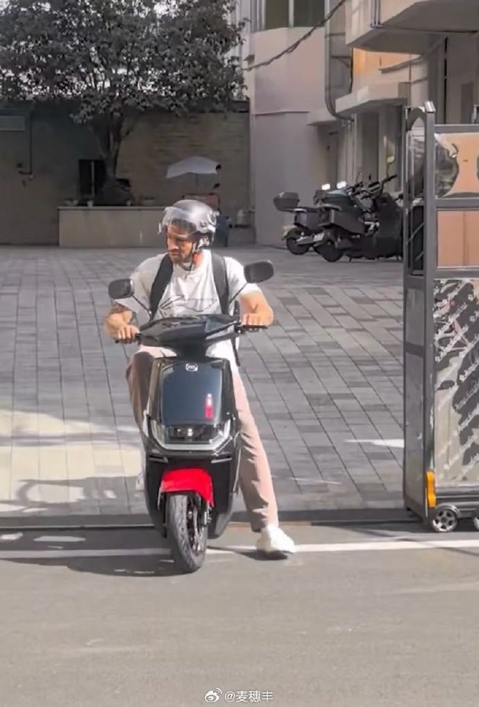 2025-02-28 21:25:45入乡随俗!广东新援伯克骑上电动车 戴上头盔非常专业