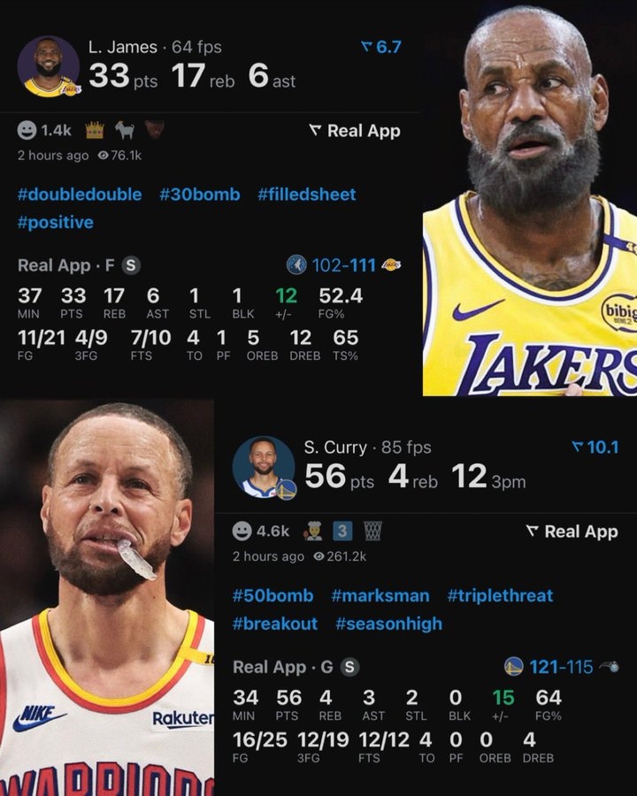 2025-03-01 00:55:36一个56分12记三分一个33+17+6!美媒晒詹库老年P图:今夕是何年?