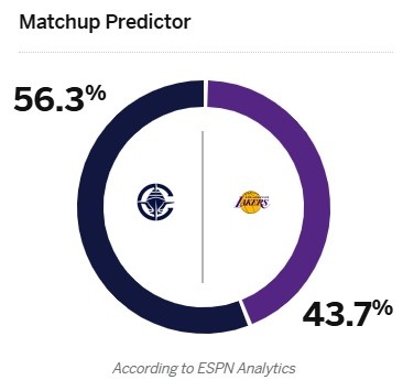 2025-03-03 08:37:26洛杉矶德比大战!ESPN胜率预测:5连胜湖人仅43.7% 快船56.3%