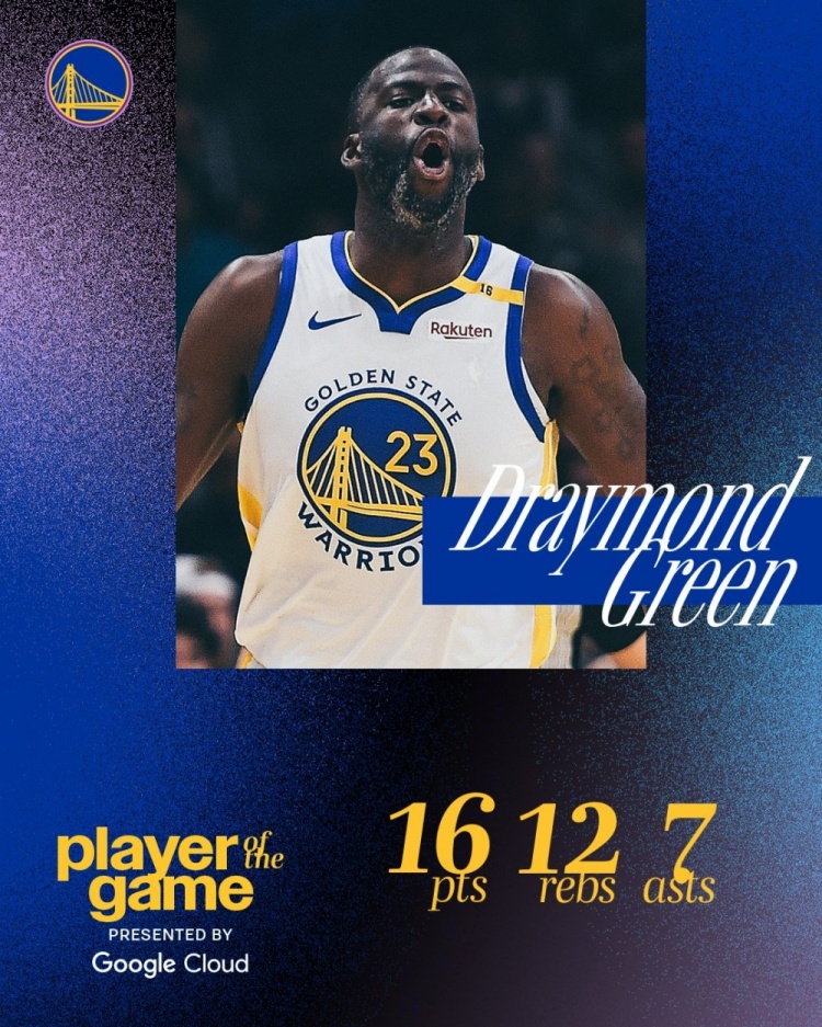 2025-03-04 17:26:26勇于出手!勇士官推评本场最佳球员 追梦拿下16分12板7助2断当选