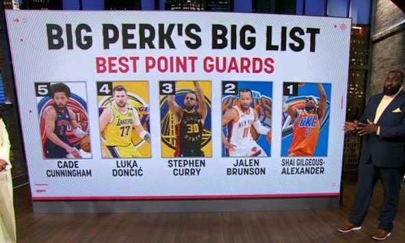 2025-03-06 10:11:28帕金斯列联盟目前前5控卫:SGA、布伦森、库里、东契奇、CC