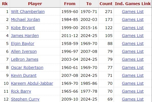 2025-03-07 12:17:04库里砍下生涯第70场40+ 追平贾巴尔和巴里 并列历史第10