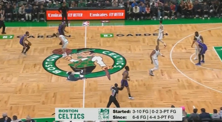 2025-03-09 11:15:59劲头很足!首节杰伦-布朗9中4&塔图姆8中5 两人高效合砍23分