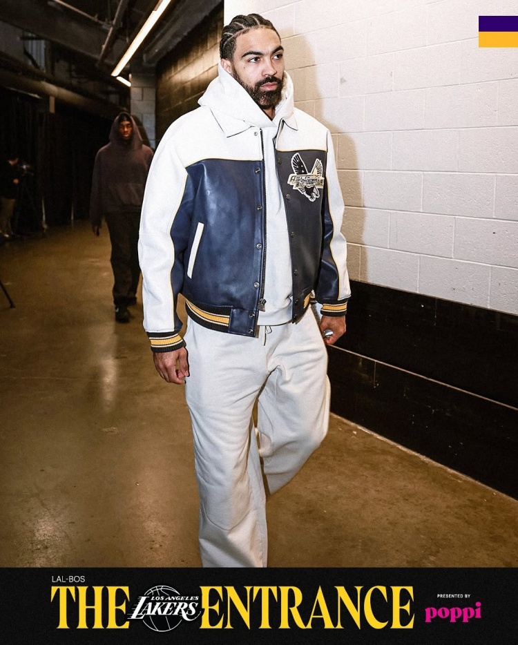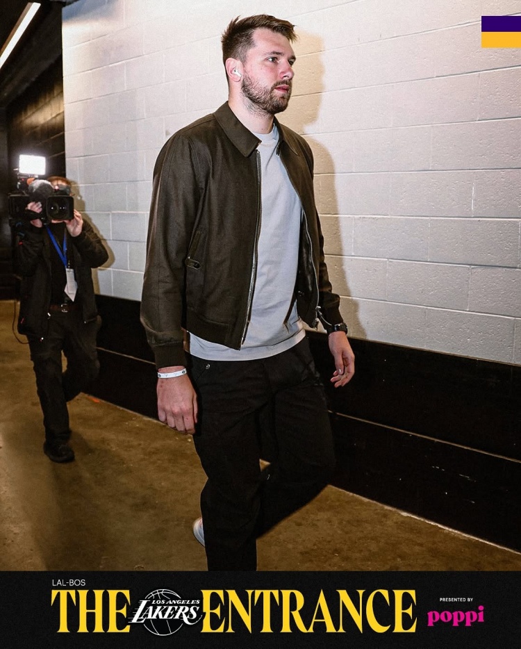 2025-03-09 11:20:01湖人众将入场穿搭:东契奇低调如常 文总夹克套卫衣 老詹帽子吸睛