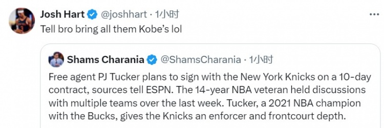 2025-03-09 11:21:42塔克10天合同签尼克斯!哈特调侃:兄弟把你的科比鞋都带上
