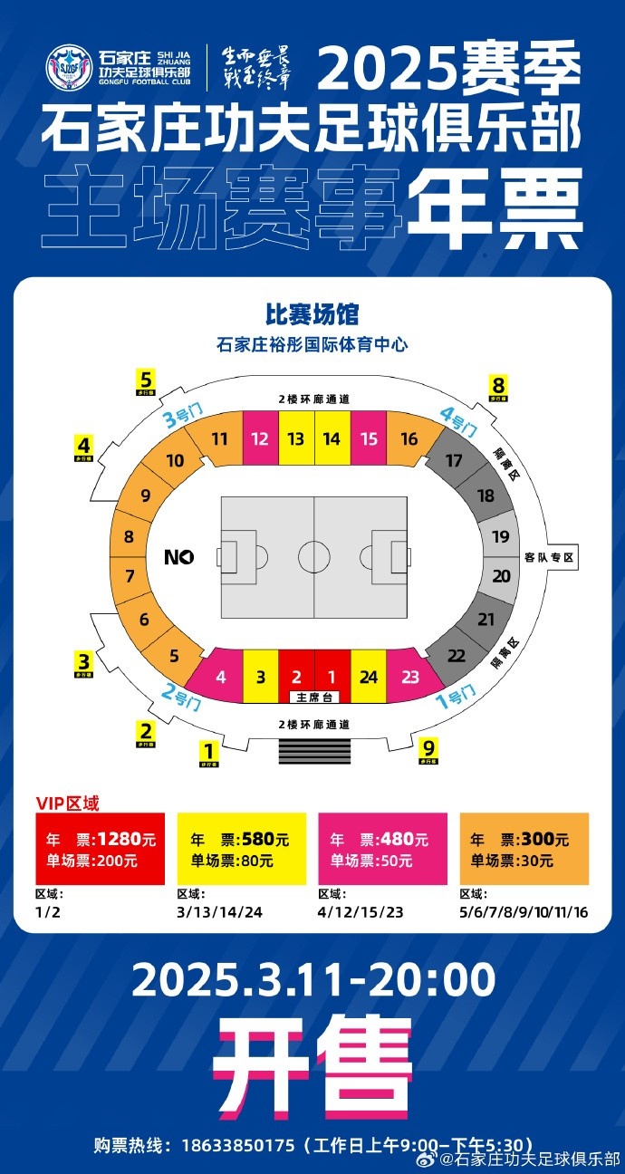 2025-03-11 19:09:13年票预告|3月11日晚20:00 石家庄功夫2025赛季主场年票开售