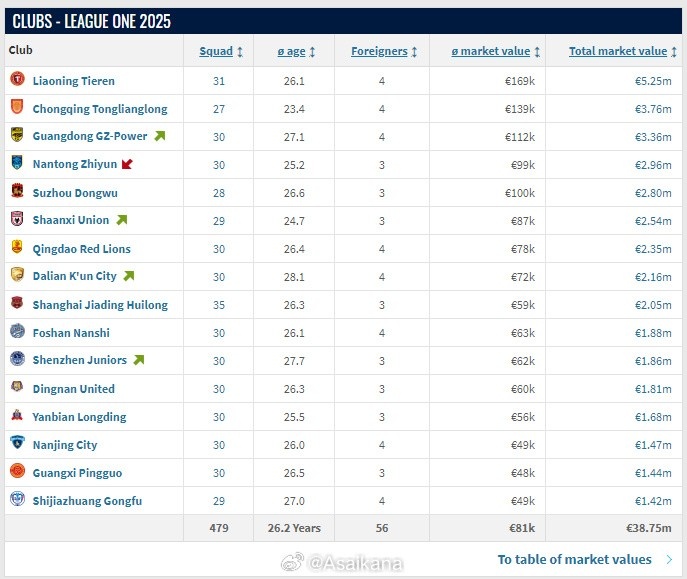 2025-03-12 17:18:11辽宁铁人总身价525万欧元,为新赛季中甲最高