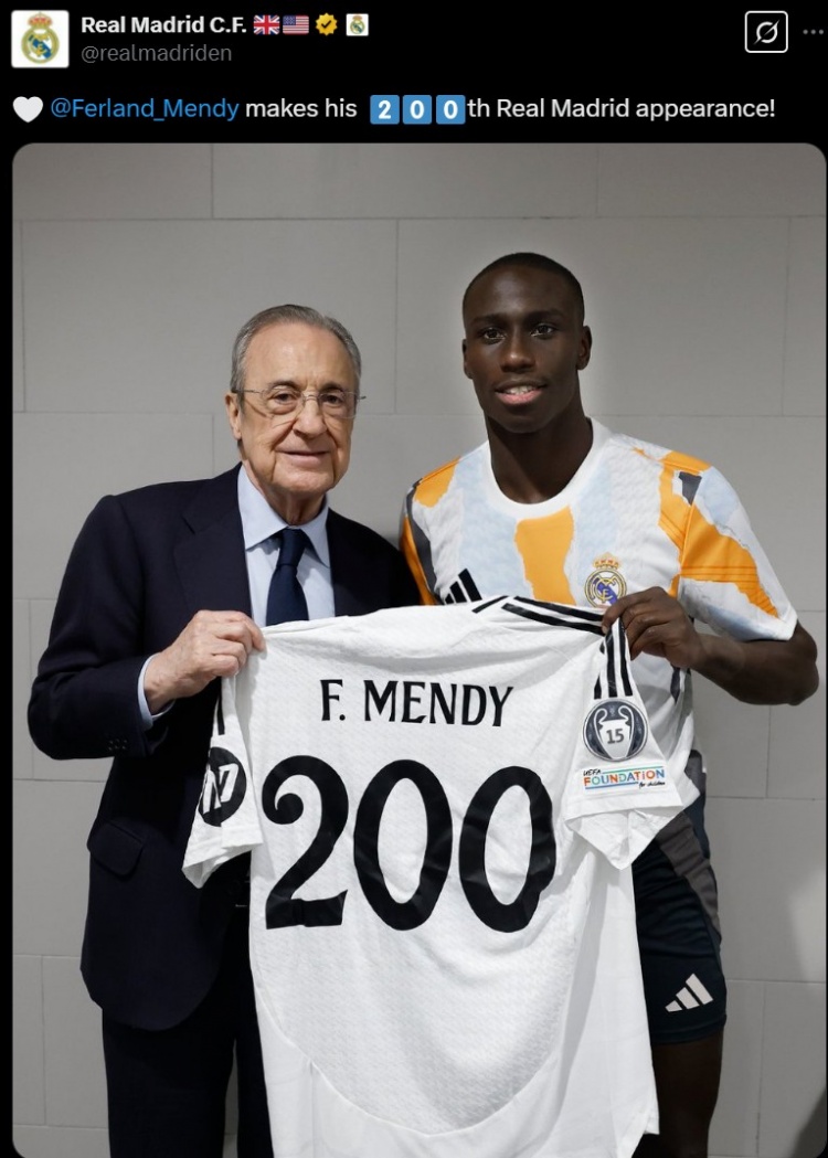 2025-03-13 11:54:14门迪达成皇马200次出场里程碑,获赠纪念球衣&与弗洛伦蒂诺合影