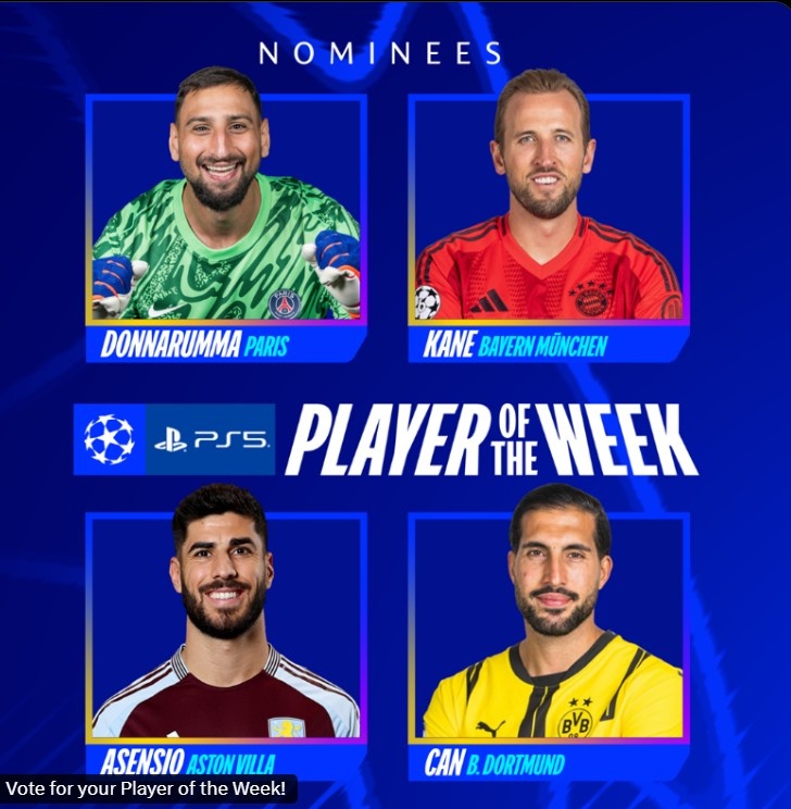 2025-03-13 11:54:49欧冠官方本轮最佳球员候选:凯恩&多纳鲁马&阿森西奥&埃姆雷-詹