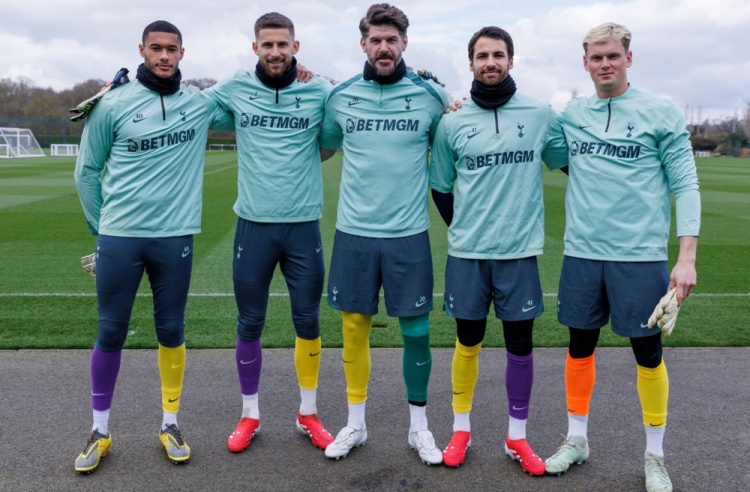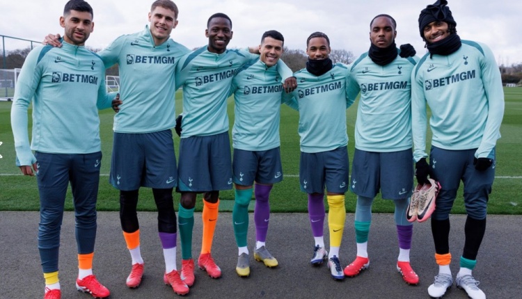 3月13日讯 热刺官网消息,在周三的训练中,男女足一线队球员都穿着色彩鲜艳、左右脚不同颜色的袜子,以支持唐氏综合症患者。
