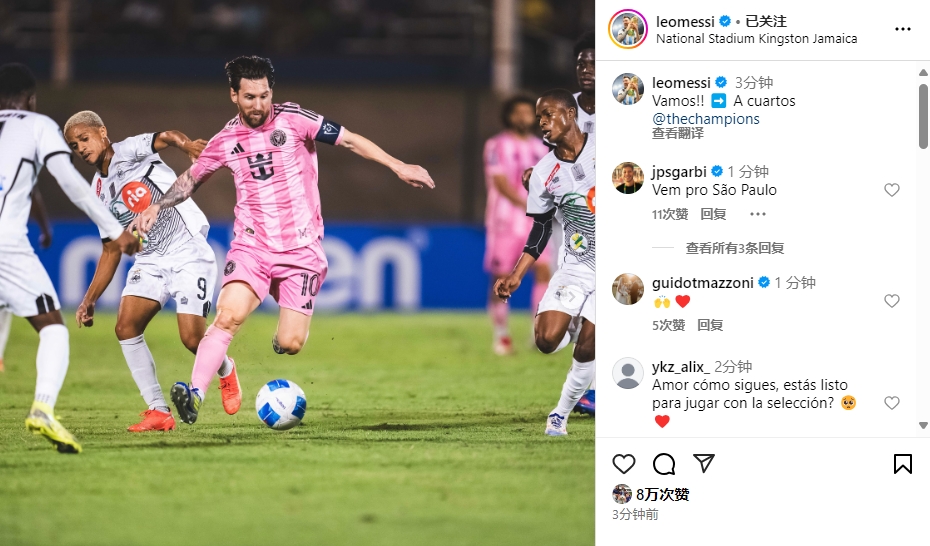 2025-03-14 10:51:27梅西更新ins:加油!!➡️进入中北美冠军杯1/4决赛
