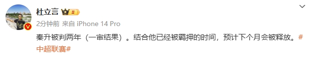 2025-03-14 14:00:38杜立言:秦升一审被判两年,预计下个月会被释放