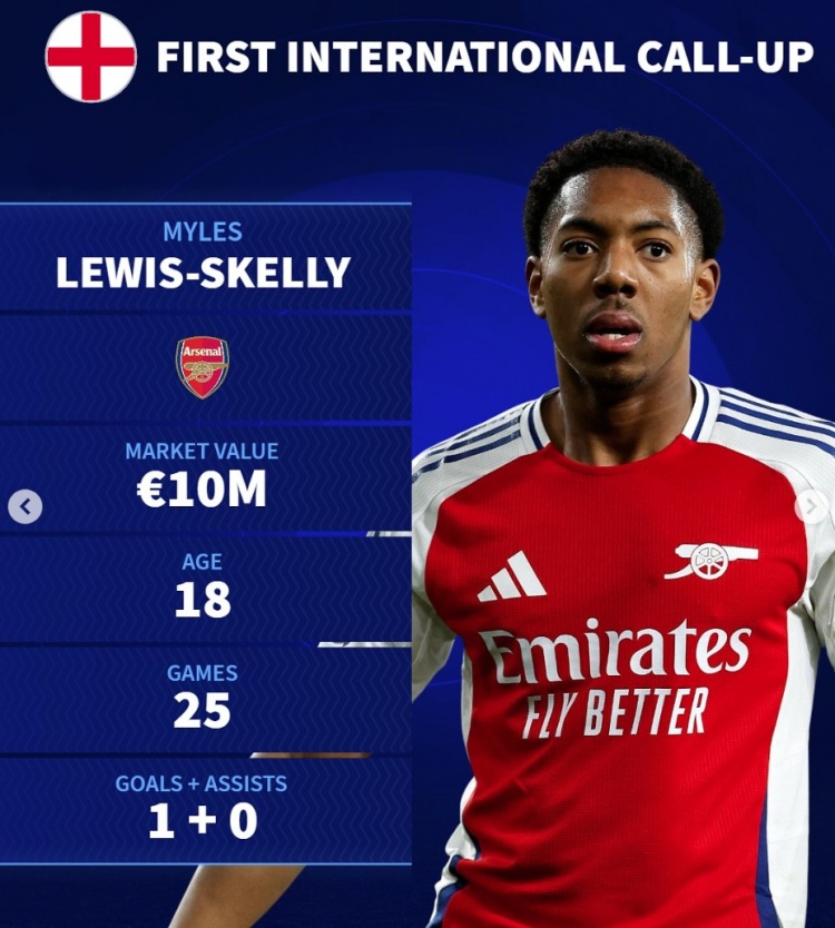 斯凯利(阿森纳,英格兰),1000万欧,18岁。25场1球0助攻