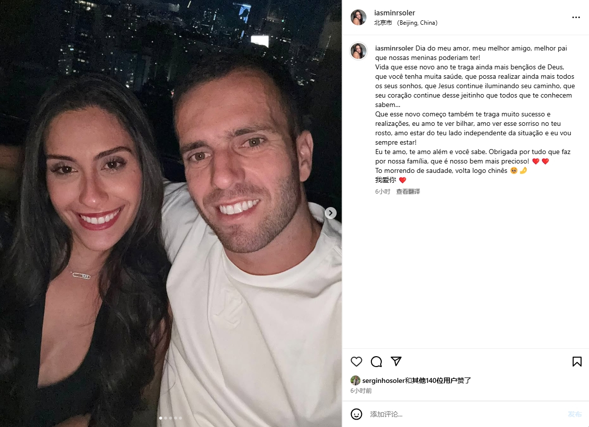 2025-03-15 22:21:36嫂子好!塞尔吉尼奥妻子中葡双语告白:超想你中国人,我爱你❤️