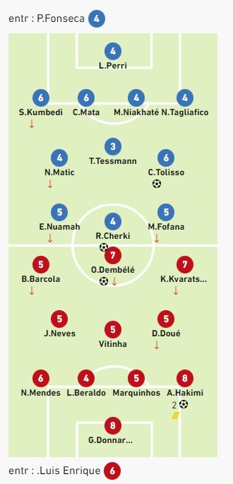 2025-02-24 21:05:07队报评分巴黎3-2里昂:多纳鲁马、阿什拉夫8分并列最高