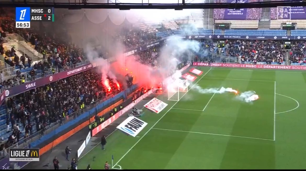 据报道,比赛期间,主场的蒙彼利埃球迷们开始燃放烟火,导致看台出现了小型火灾,最终比赛被腰斩。