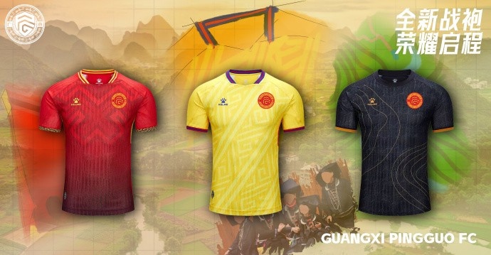 2025赛季,广西平果足球俱乐部发布了三款球衣,分别以红、黄、黑为主色调,将壮乡文化精髓与足球竞技精神完美融合,彰显广西足球的独特气质与壮志雄心。新球衣将伴随球队征战中甲联赛、足协杯等各项赛事,以全新形象开启2025赛季的新征程!