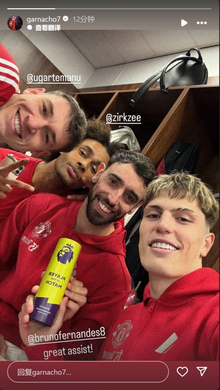 2025-03-17 15:43:25加纳乔社媒晒与B费、齐尔克泽、乌加特合照:很棒的助攻