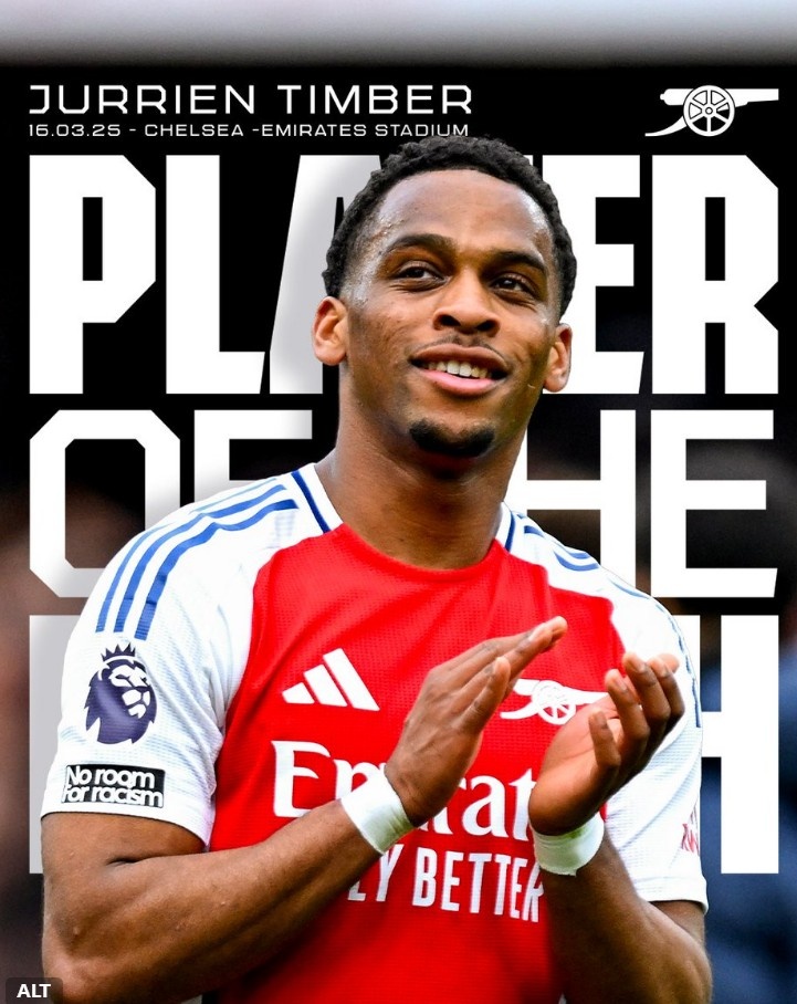 2025-03-17 15:47:279次赢得对抗,阿森纳官方:廷伯当选对阵切尔西队内最佳球员