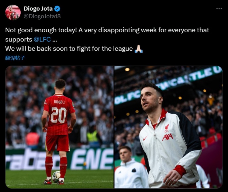 2025-03-17 15:47:54若塔社媒:这是非常失望的一周,我们会很快重新为联赛而战