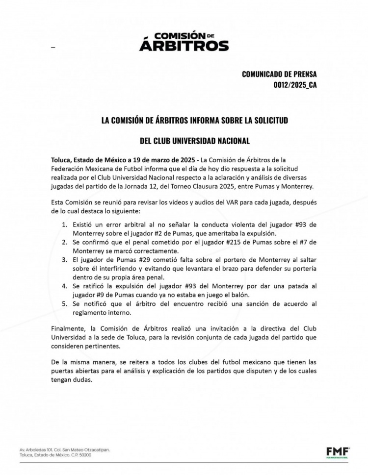 2025-03-20 22:41:19墨西哥裁判委员会:拉莫斯上半场就应被罚下,裁判遭内部处罚