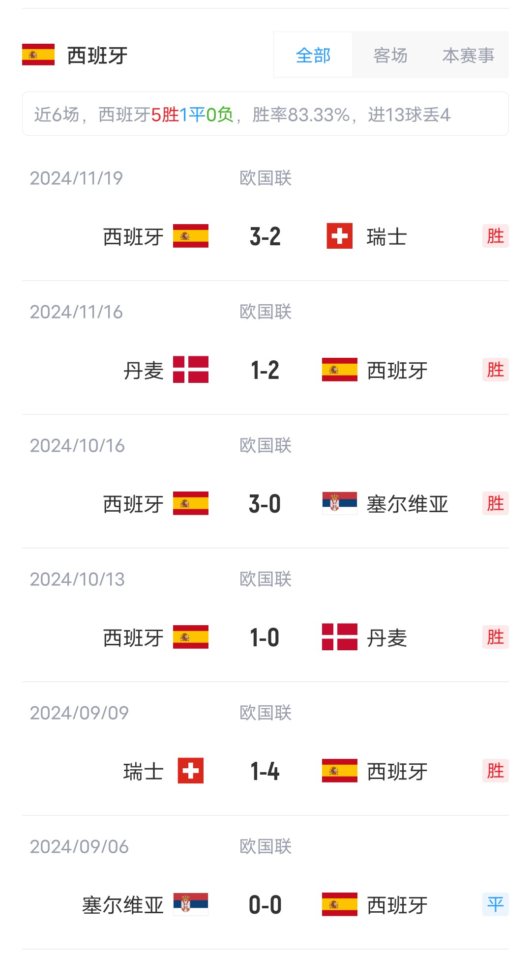 西班牙首发:23-乌奈-西蒙、2-波罗、5-勒诺尔芒、4-库巴西、22-库库雷利亚、18-祖比门迪、20-佩德里、8-法比安、19-亚马尔、17-尼科-威廉姆斯、7-莫拉塔