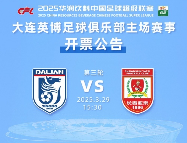 2025-03-21 17:44:33大连英博新赛季主场首战下周一开票,票价60-300元分为6档