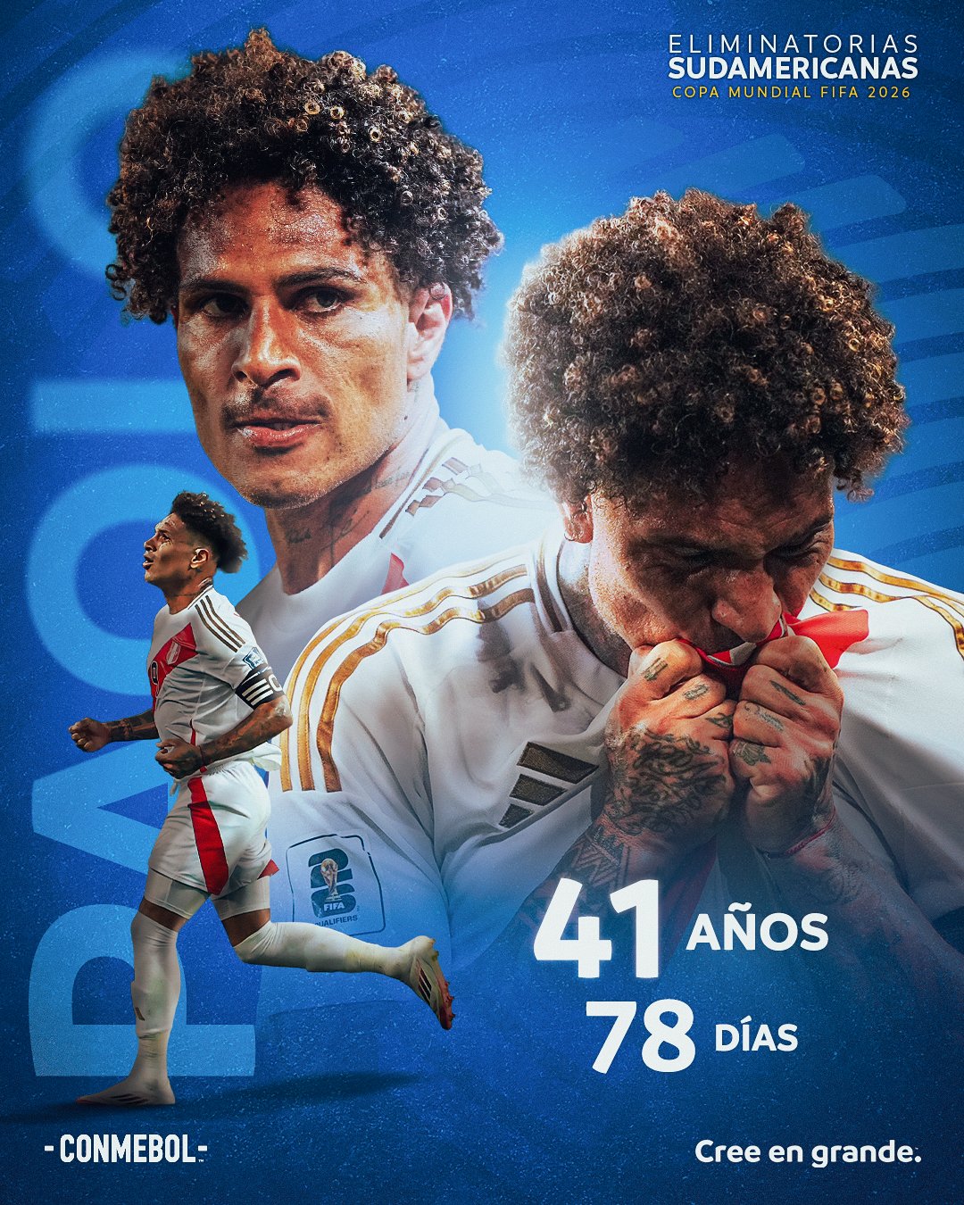 2025-03-21 17:48:2641岁78天!秘鲁前锋保罗-格雷罗破门,成南美世预赛最年长进球者
