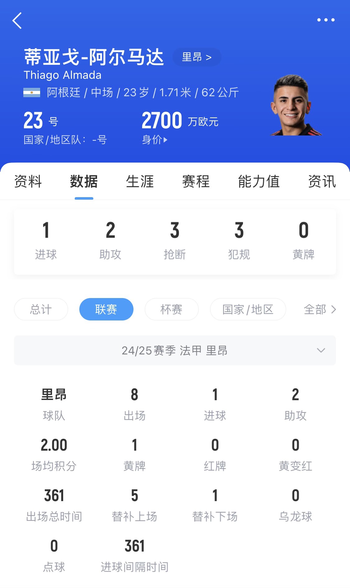 2025-03-22 11:26:48一鸣惊人!23岁阿尔马达法甲近2场1球2助,国家队轰世界波